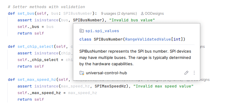 Now, when I come back six months later, I don’t have to remember what the valid range is. It’s right there in the class. It also shows up in the IDE, in autocomplete, and in docs.